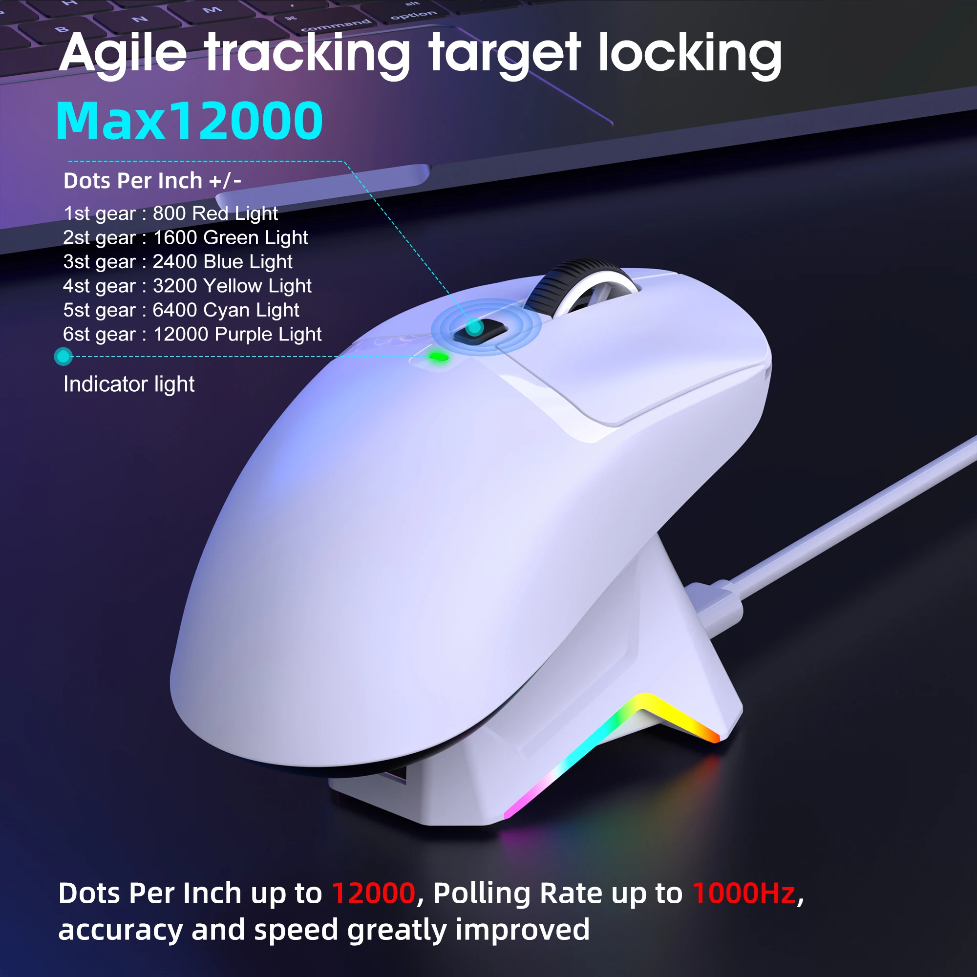 Nombre del producto: Ratón para juegos de modo triple con base de carga