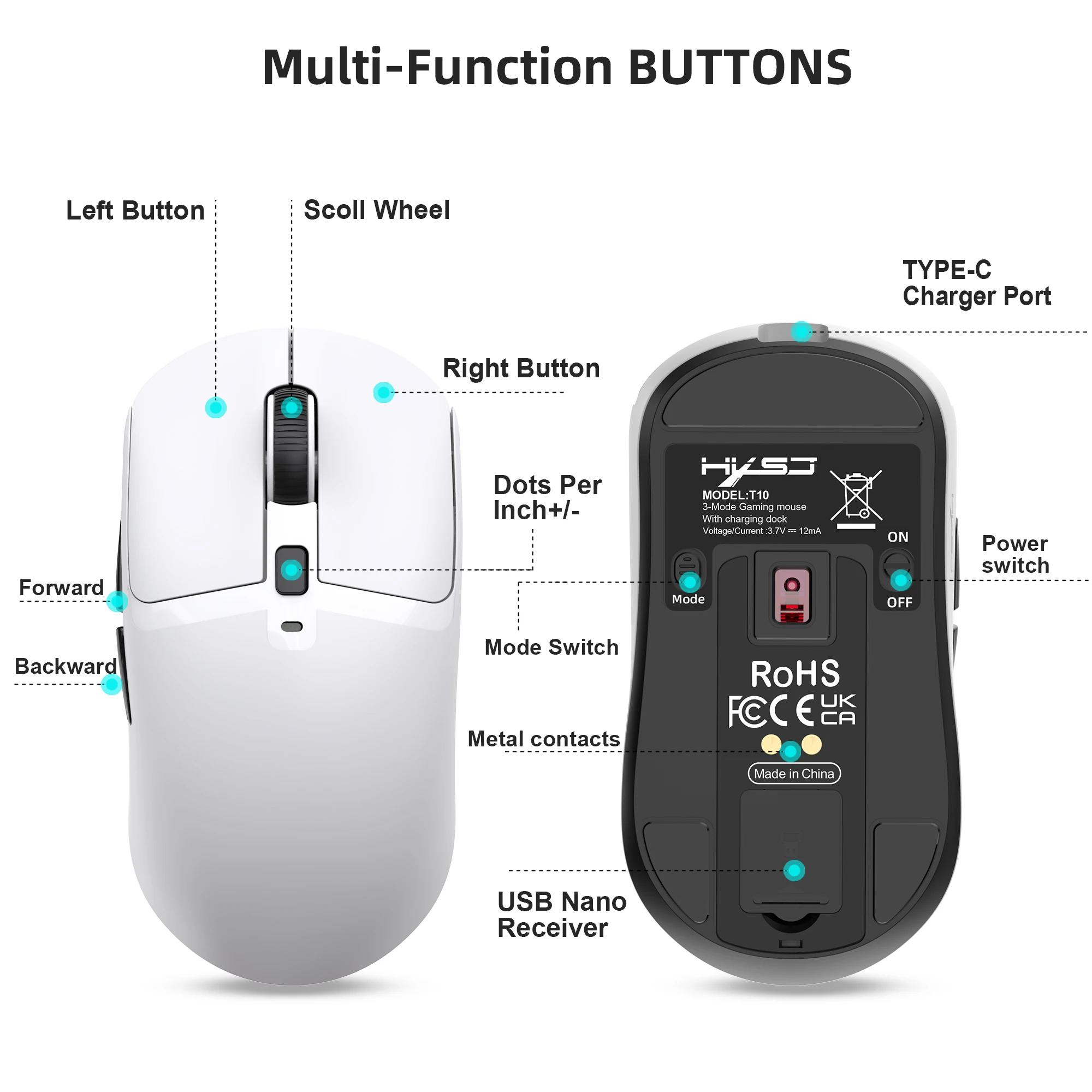 1 ratón de juego T10 de tres modos.