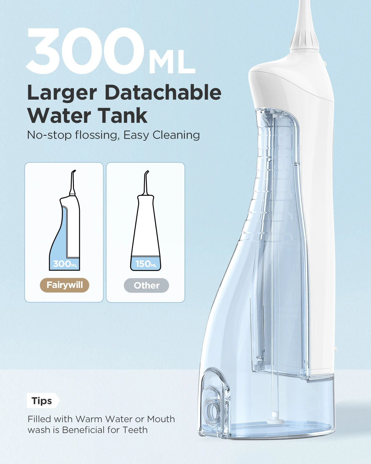 • Limpiador de dientes impermeable 300ML :El diseño impermeable asegura que el dispositivo se puede utilizar en la ducha o el baño sin ninguna preocupación.