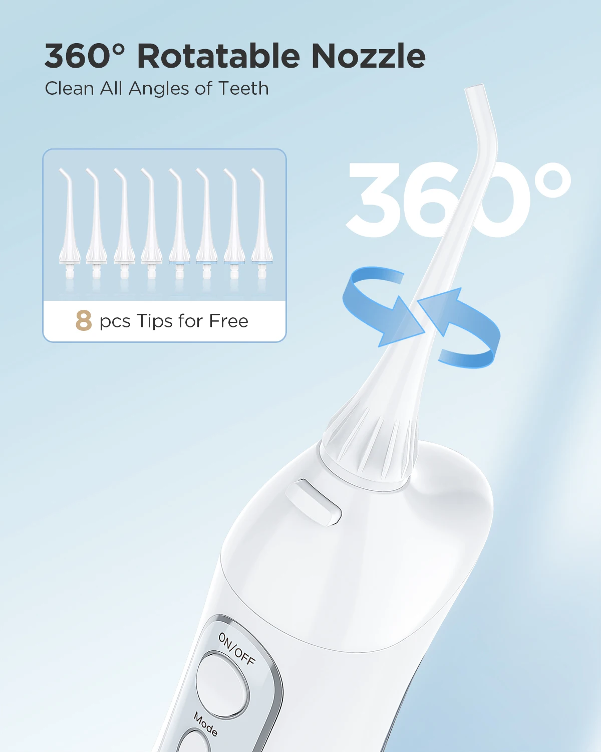 • Tanque de agua de 3 modos :Elija entre 3 modos diferentes para personalizar su experiencia de uso del uso de la red y lograr una salud oral óptima.