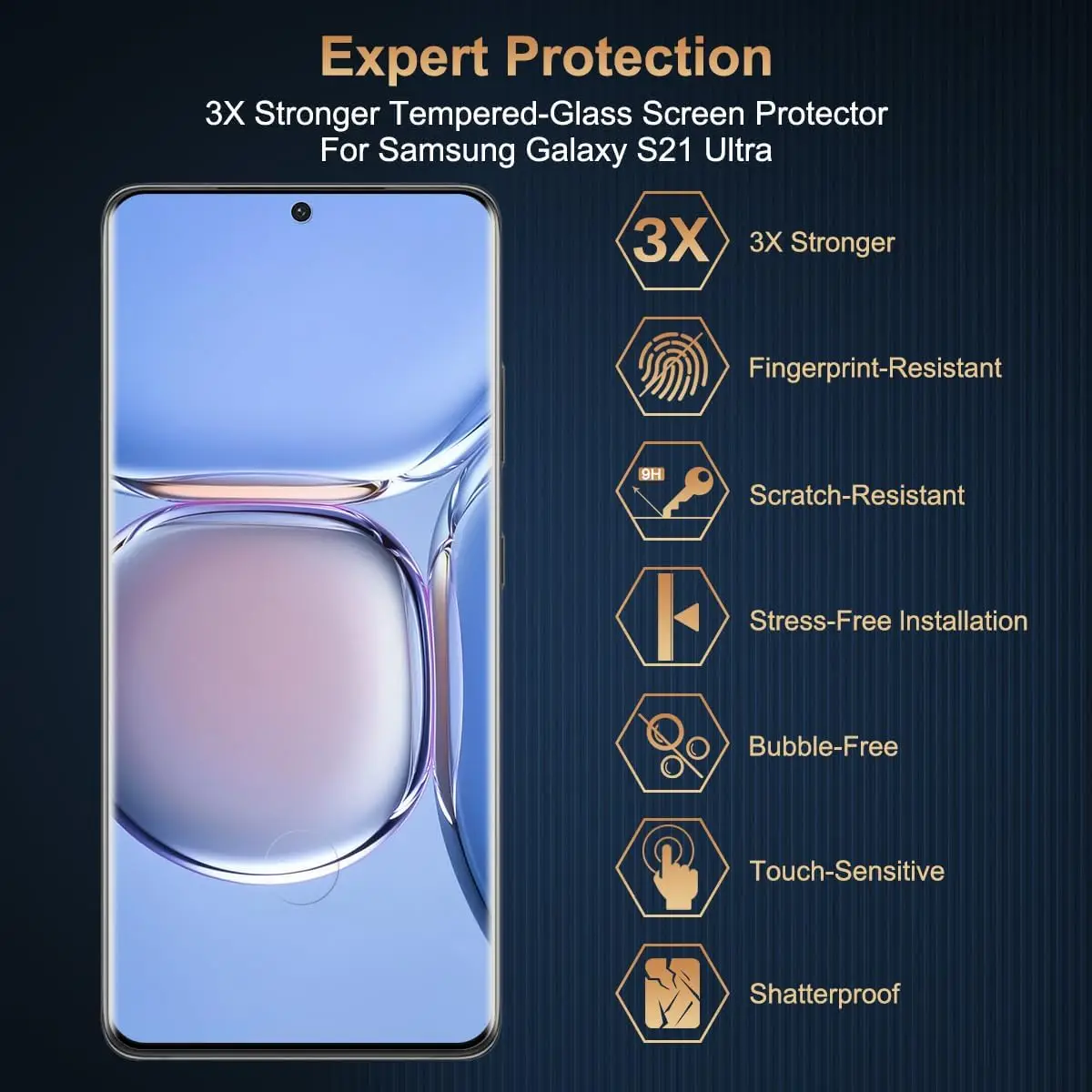 Comprar 3 piezas 9H curvado cuatro lados pegamento vidrio templado para Samsung Galaxy S21 Ultra 5G HD protector de pantalla