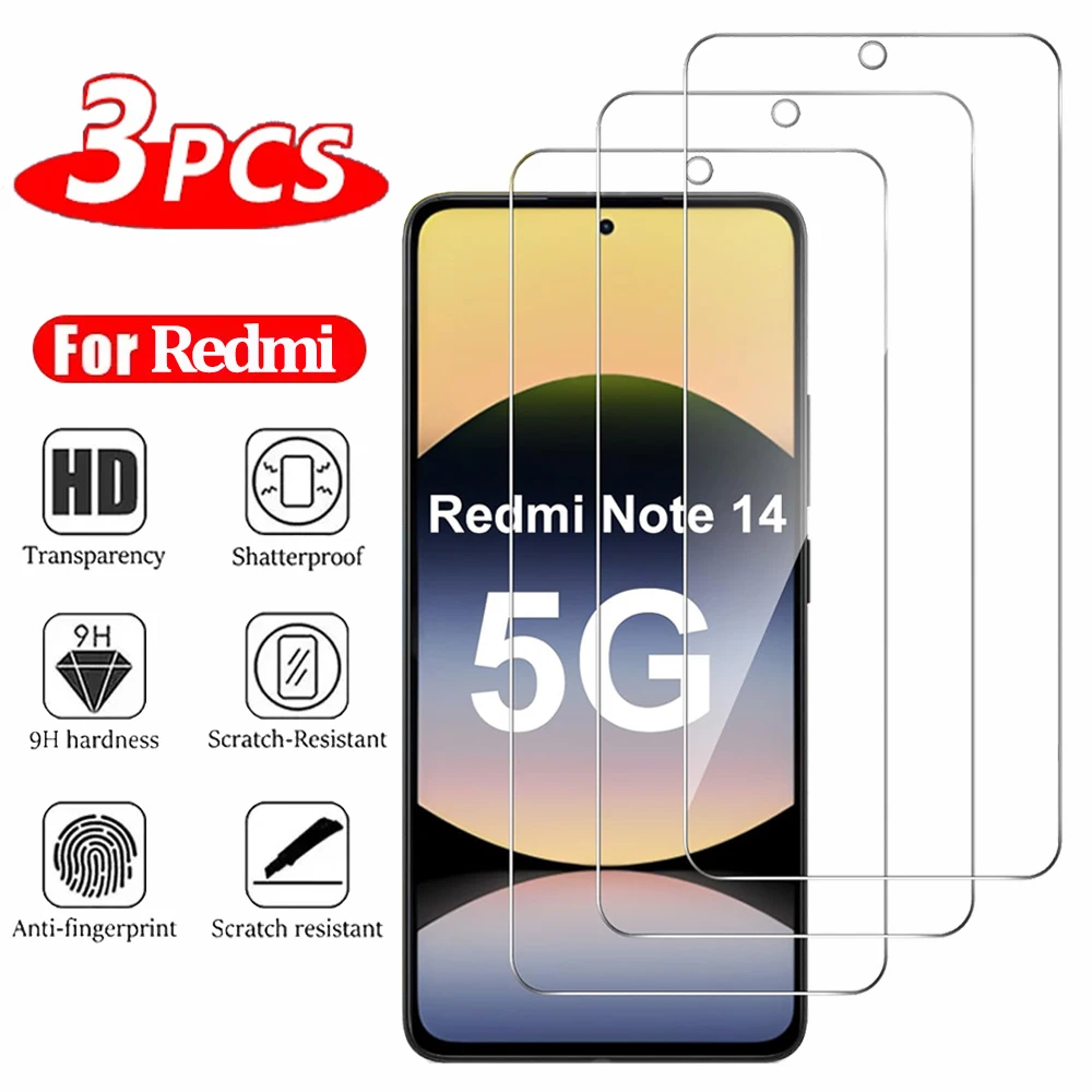 3 uds vidrio templado transparente para Xiaomi Redmi Note 14 13 12 11 10 Pro Protector de pantalla Redmi 13C 12C 10C película frontal HD Redmi Note14 5G Protector de movimiento Pantalla Redmi Note 13 Pro vidrio para teléfono móvil