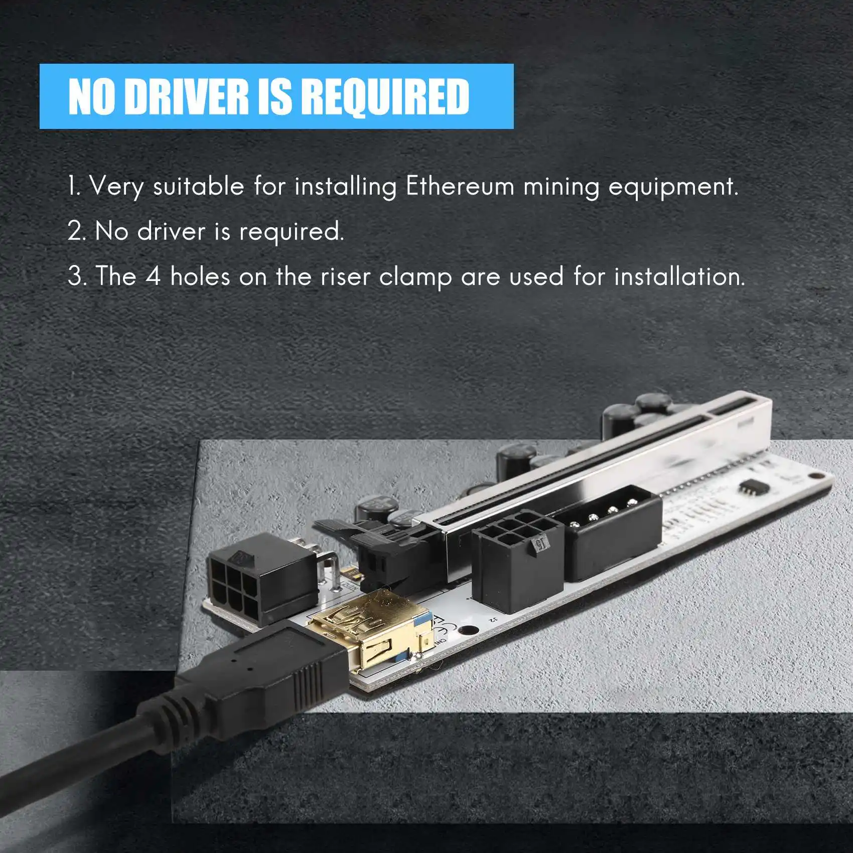 1. Muy adecuado para instalar equipos de minería Ethereum. 2. No se requiere ningún controlador. 3. Los 4 orificios de la abrazadera del elevador se utilizan para la instalación. 4. Utilice indicadores LED y fusibles en la placa de circuito. 5. La fuente de alimentación de la tarjeta gráfica utiliza 8 condensadores sólidos para hacer que la fuente de alimentación de la tarjeta gráfica sea más estable y segura. 6. La interfaz 6PIN+4PIN hace que la tarjeta gráfica sea independiente de la placa base para reducir la carga en la placa base. Esto reduce la carga sobre la placa base al conectar varias tarjetas gráficas. 7. El conector PCI-E utiliza cables blindados multicapa, que se pueden conectar a un máximo de 3,0 M sin atenuar la señal. 8. El cable USB es suave y estable, fácil de enrutar y la tarjeta gráfica se puede colocar a voluntad. 9. La ranura para tarjetas está equipada con una hebilla de fijación, lo que facilita quitar y fijar la tarjeta gráfica, y la tarjeta gráfica no se caerá de la ranura. 10. El cable de alimentación utiliza alambre de cobre puro para evitar quemaduras durante el uso. Nombre del producto: cable de extensión de placa adaptadora PCI-E X1 a PCIE X16 Rendimiento del producto: interfaz 6P de tarjeta gráfica de cable de extensión (capacidad de fuente de alimentación de 16 A) para mejorar la fuente de alimentación Interfaz: PCI-E, USB3.0, 2 piezas 6 pines, 4 pines Longitud del producto: Cable USB: 60 cm / 23,62 pulgadas Soporte del sistema: para Linux/xp/win7, 8, 10 Tamaño: 120x44mm Material: PCB + metal Color: negro + blanco Contenido del paquete: 3*16X tarjetas adaptador 3*1X tarjetas adaptador 3 * cables USB 3 * cables de alimentación SATA Solo el contenido del paquete anterior, otros productos no están incluidos. Nota: Las condiciones de luz y las diferentes pantallas pueden hacer que el color del elemento en la imagen sea un poco diferente al real. El error de medición permitido es +/- 1-3 cm.