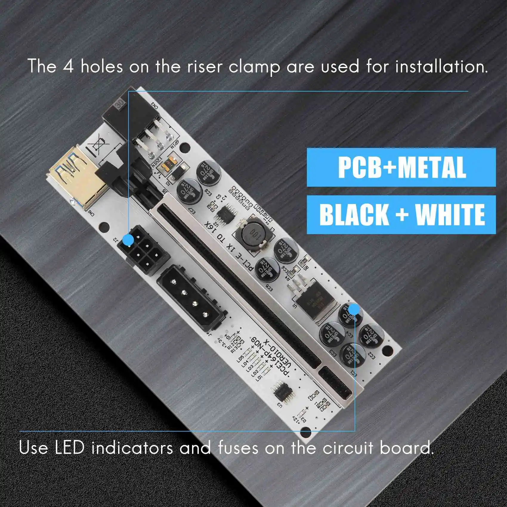 Comprar 3 piezas VER 010-X PCIE Riser 1X a 16X, extensión gráfica con Flash LED para minería de Bitcoin GPU, tarjeta adaptadora Riser alimentada