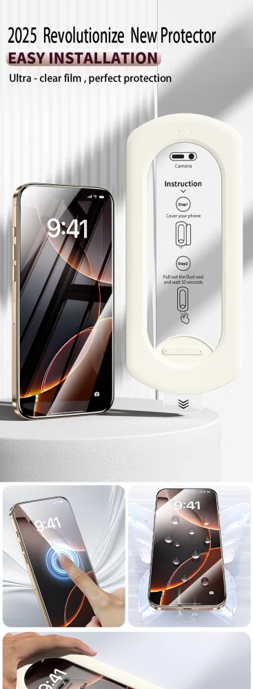 【¡Un paso innovador!0 burbujas + 0 polvo + 0 malalineados=100% éxito】Incluye todo lo que necesita con innovadora alineación automática, eliminación de polvo y tecnología sin burbujas.Con solo un tirón, la instalación se vuelve sencilla y sin esfuerzo en segundos.Sin polvo, burbujas ni imperfecciones; convierte a los principiantes en expertos.