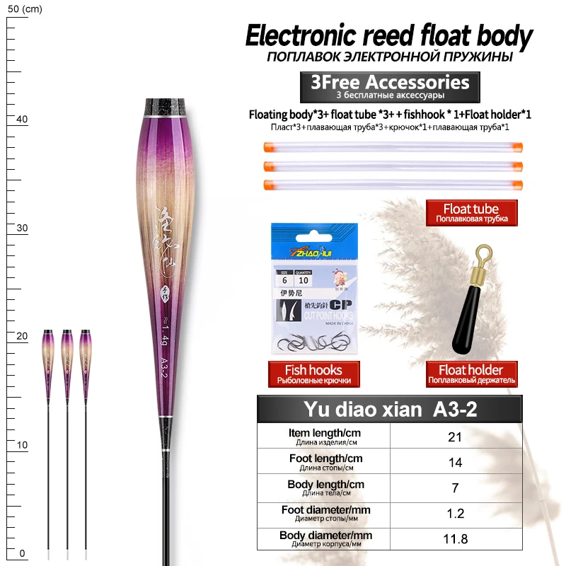 Cuerpo flotante de caña para pie, 3 uds., + tubos de 3 uds., 1 gancho para bolsa, 1 descanso flotante, cuerpo de boya luminosa, sin cola, sin batería CR425, aparejos de pesca