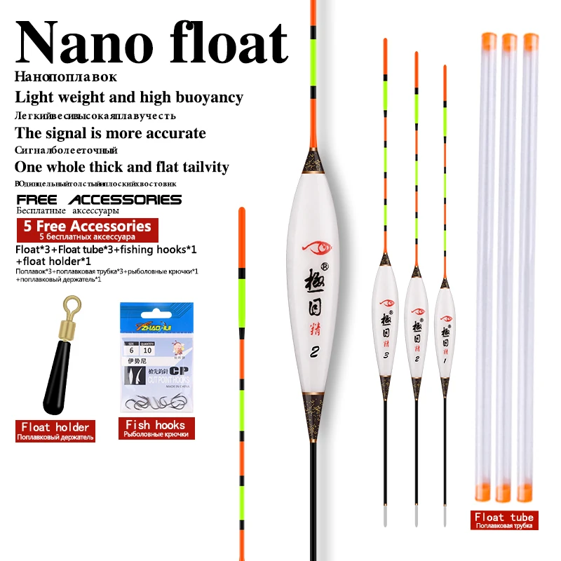 Flotador de Pesca de 3, Flotador de aguas poco profundas, tapón Nano compuesto, Pesca Vertical, Bobber, lago, río, flotador de Pesca, accesorios de herramientas