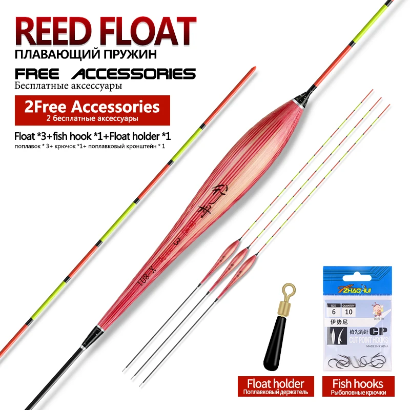 Comprar 3 uds flotadores de pesca de caña + 1 ganchos de bolsa + 1 flotador de apoyo boya de agua poco profunda cola dura boya Vertical accesorios de pesca de carpa