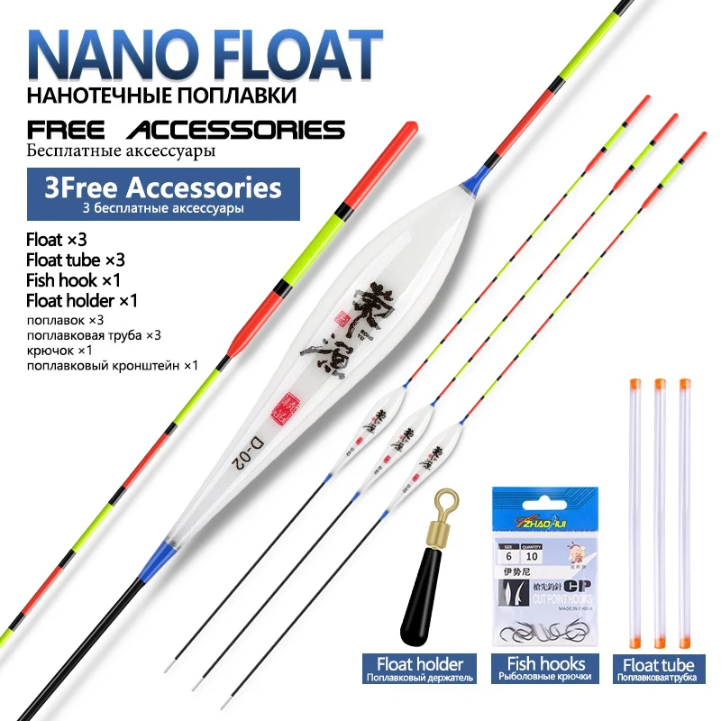 Comprar 3 uds flotadores de pesca Nano compuestos + 3 tubos flotantes + 1 bolsa de anzuelo de pesca + 1 asiento de boya Vertical herramientas de boya de pesca de río y lago aparejos
