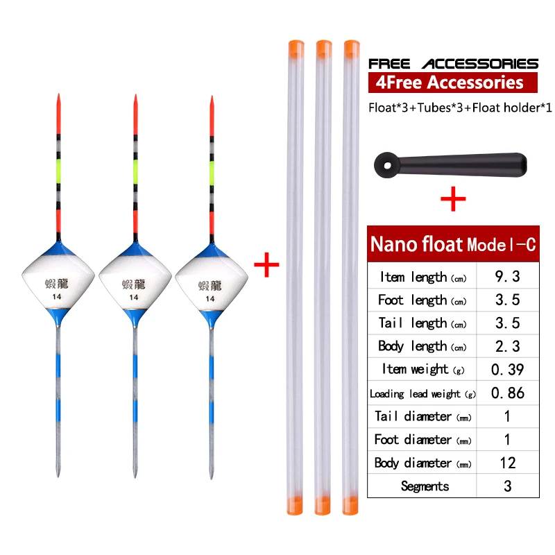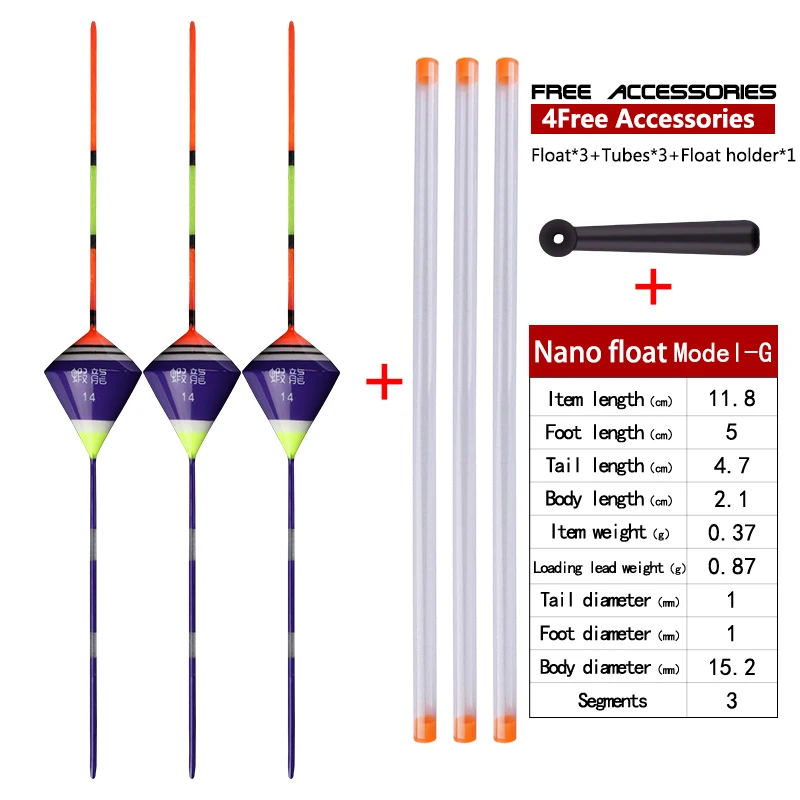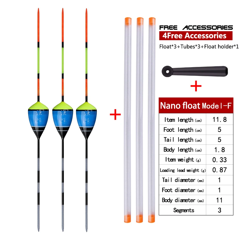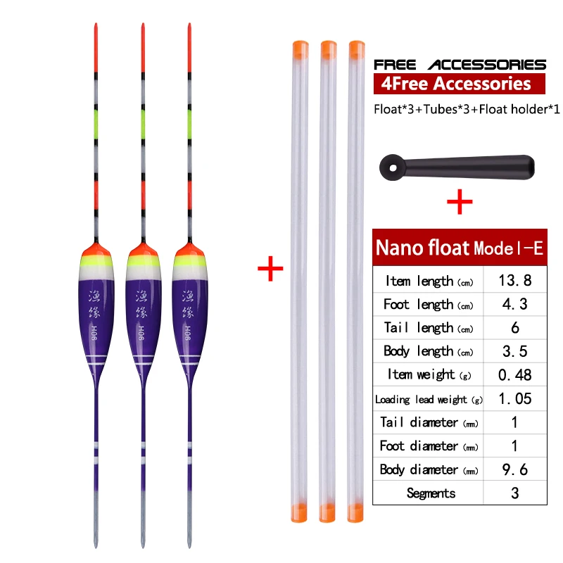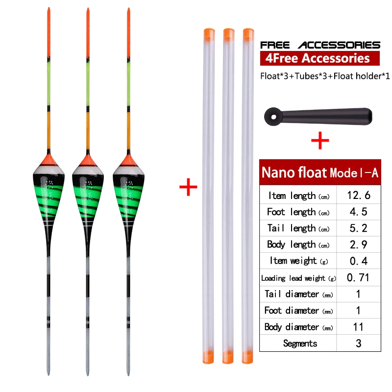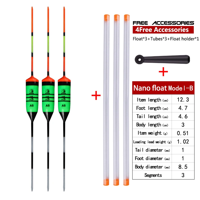 3 uds Nano flotador de pesca + 3 tubos de boya + 1 soporte de flotador flotador de pesca de agua poco profunda flotador de pesca en hielo sensible multicolor disponible