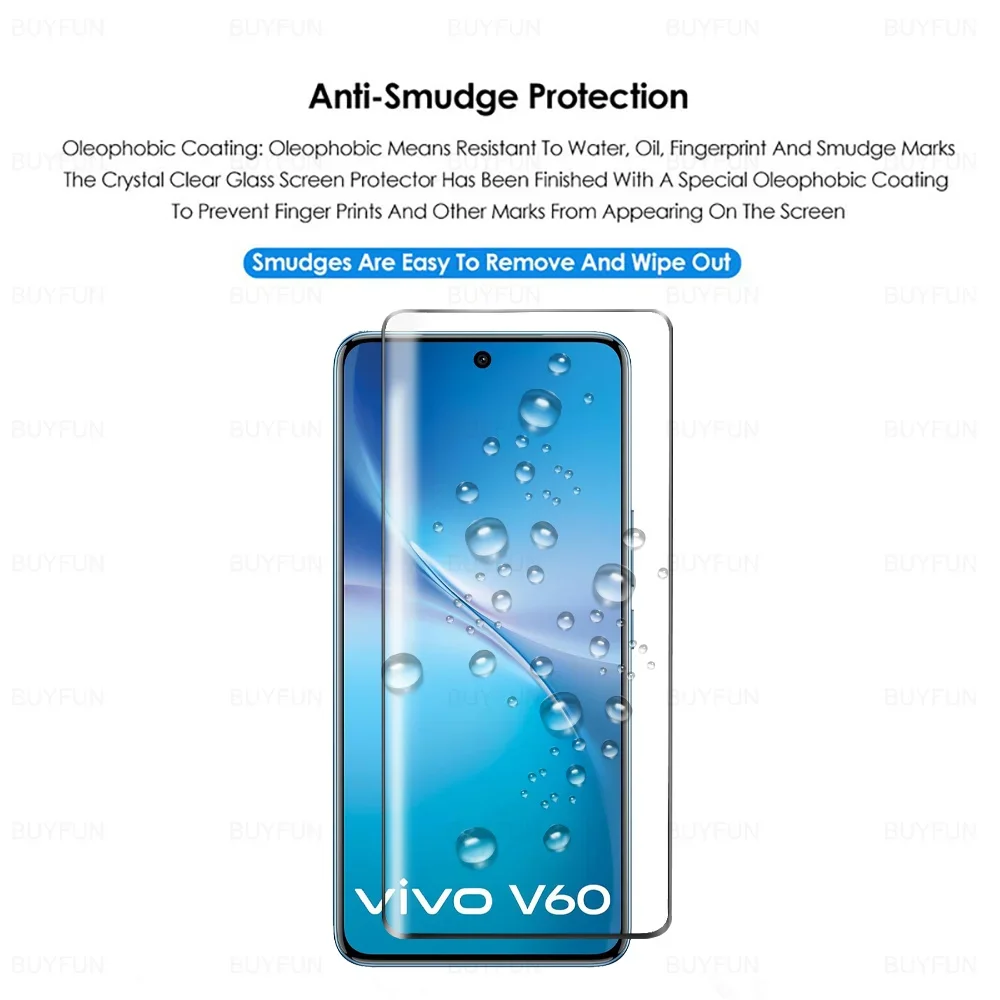 3 uds cubierta de vidrio curvado 9H para Vivo V60 Protector de pantalla película de vidrio templado VivoV60 Vovo Vovi V 60 60V 5G Global 2025 6,77 pulgadas