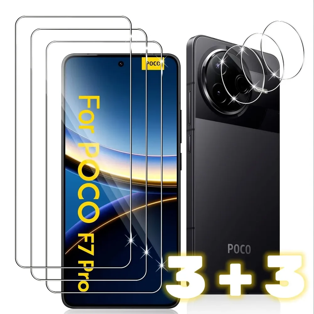 3 uds vidrio templado + 3 uds Protector de cámara templado para Xiaomi Pcoc F7 Pro Pcoc F7 Ultra X7 Pro M7 X6 C71 película protectora de pantalla - imagen 1