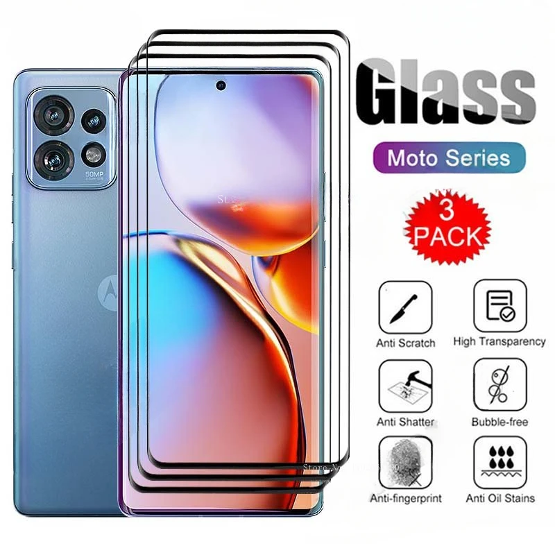 Comprar 3 uds vidrio templado para Motorola Moto Edge 40 Pro G73 G53 G23 G13 E40 E30 G Power Stlus 2023 2022 Protector de pantalla de cubierta completa