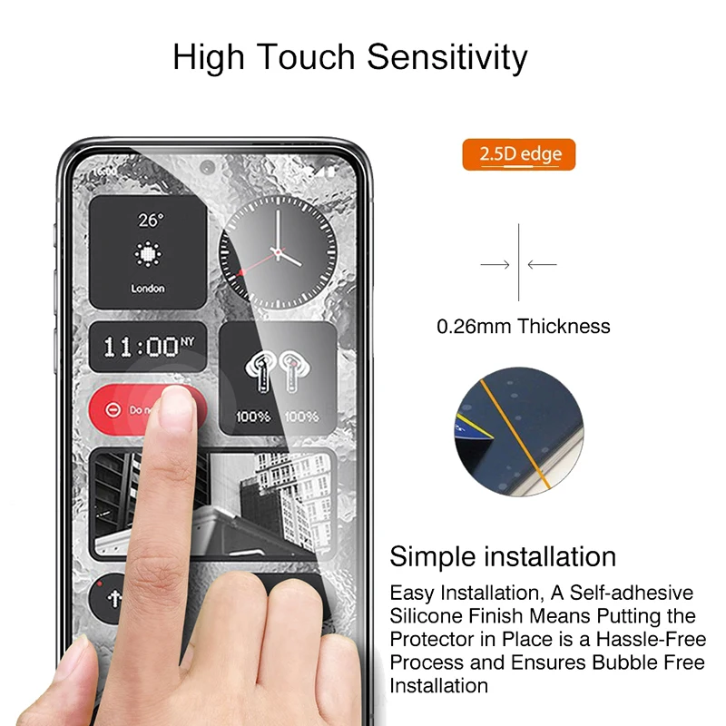3 uds vidrio templado para nada teléfono 2 2A Protector de pantalla para nada teléfono (2) 2023 6.7" película protectora de vidrio protector de teléfono 10H