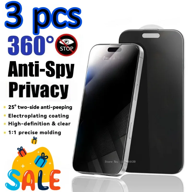 Comprar 3 uds vidrio templado de privacidad para IPhone 17 Air 16 15 14 Plus 13 12 11 Pro Protector de pantalla antiespía para IPhone 16e 13 12 Mini