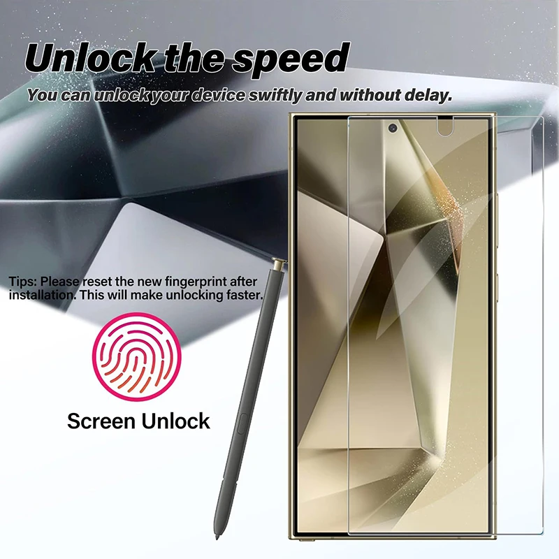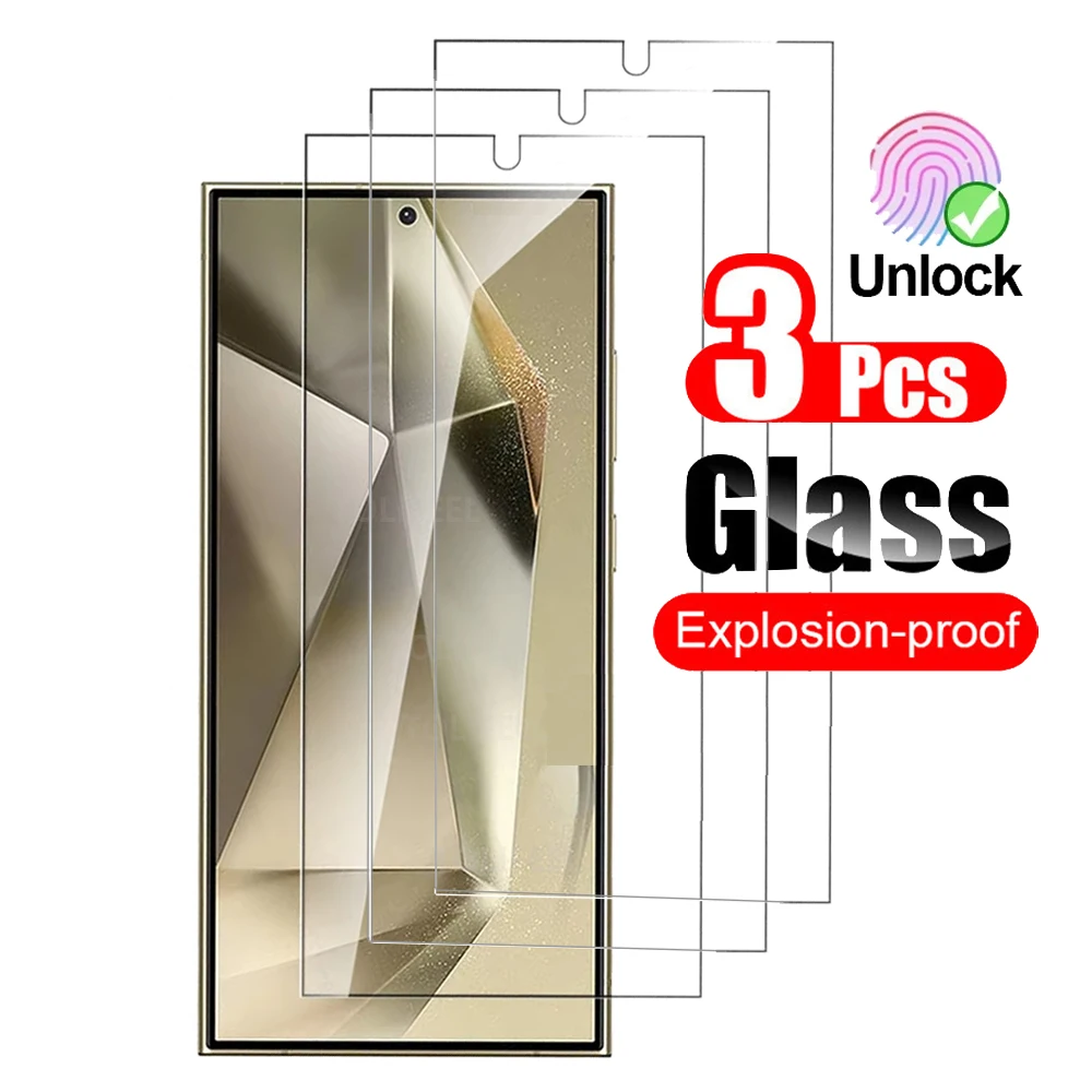 Comprar 3 uds vidrio templado para Samsung Galaxy S25 Ultra S25 Plus S25 + 5G Protector de pantalla película protectora de desbloqueo de huellas dactilares completamente transparente