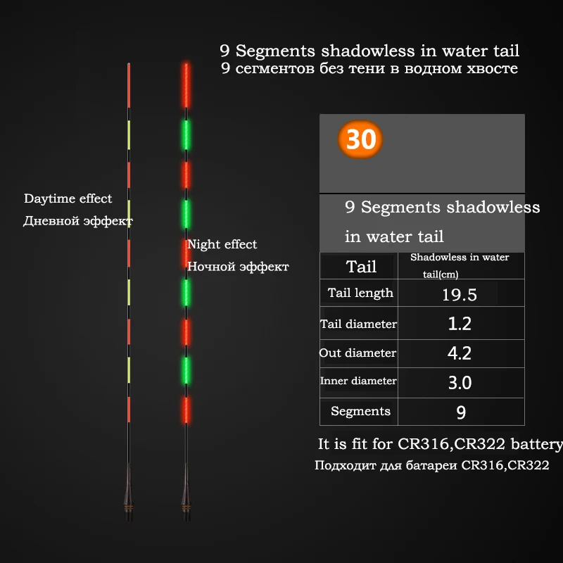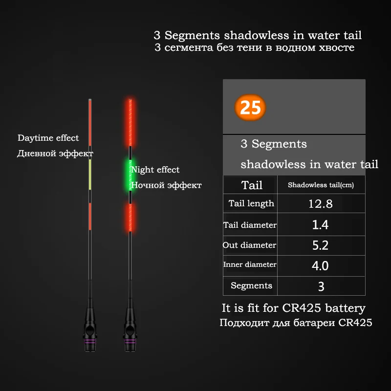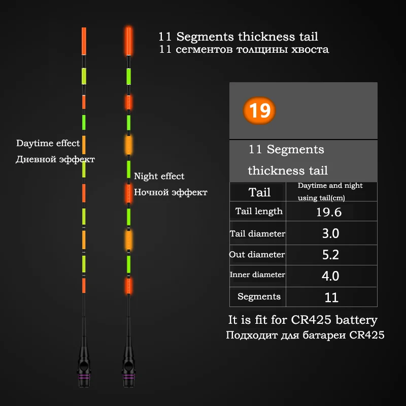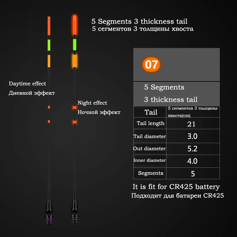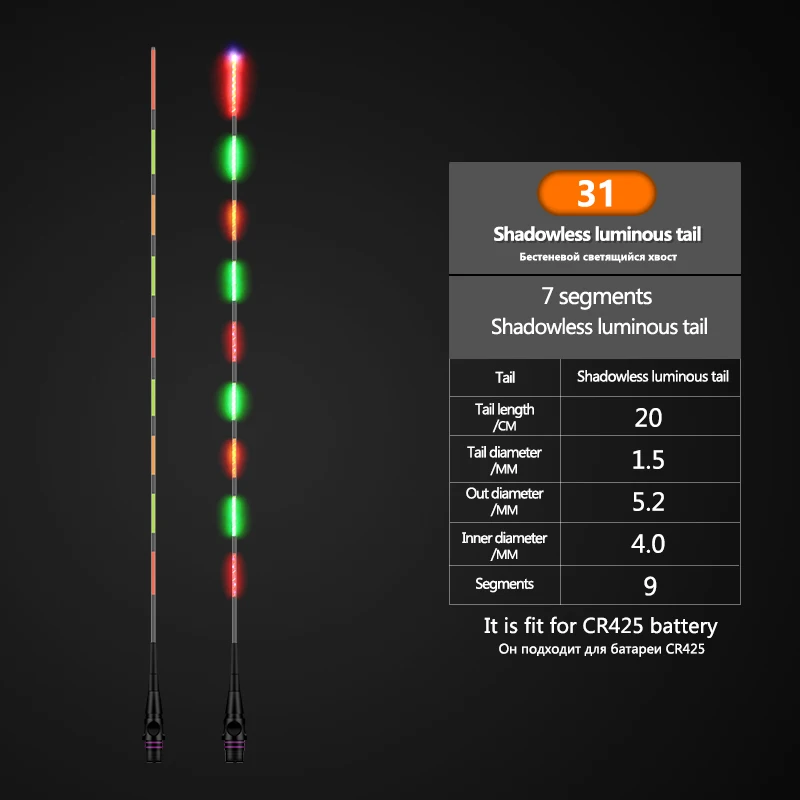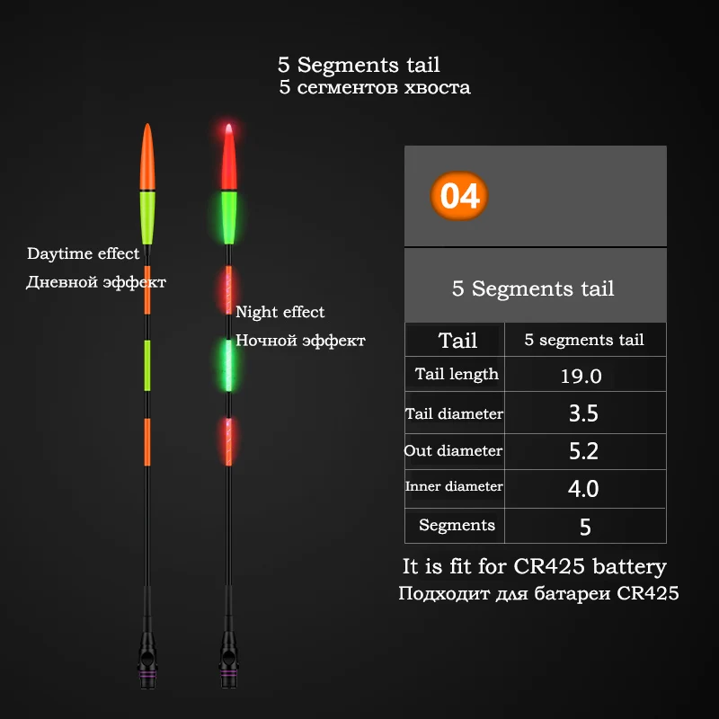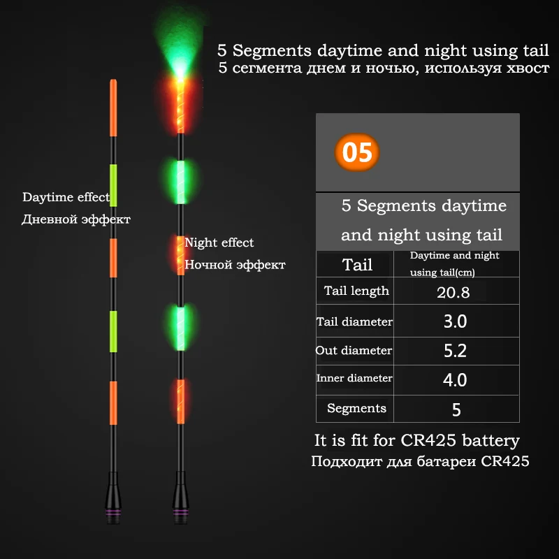 Comprar 3 unids/lote cola de flotador de pesca interfaz de colas de flotador luminosas inteligentes diámetro de salida 5,2 MM cola de flotador eléctrico sin batería
