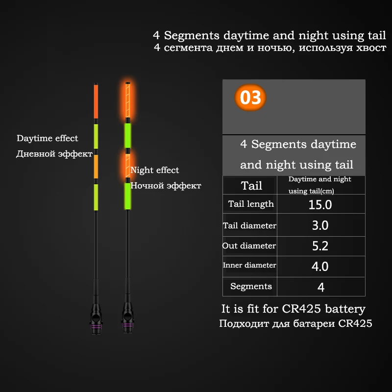 Comprar 3 unids/lote cola de flotador de pesca interfaz de colas de flotador luminosas inteligentes diámetro de salida 5,2 MM cola de flotador eléctrico sin batería