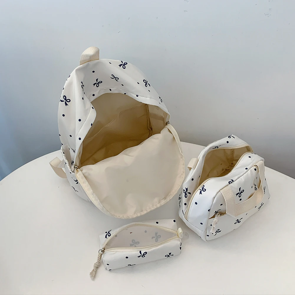 3 unids/set mochila estética con estampado de lazo con bolso y estuche para lápices mochila para estudiantes para viajes de niñas y mujeres