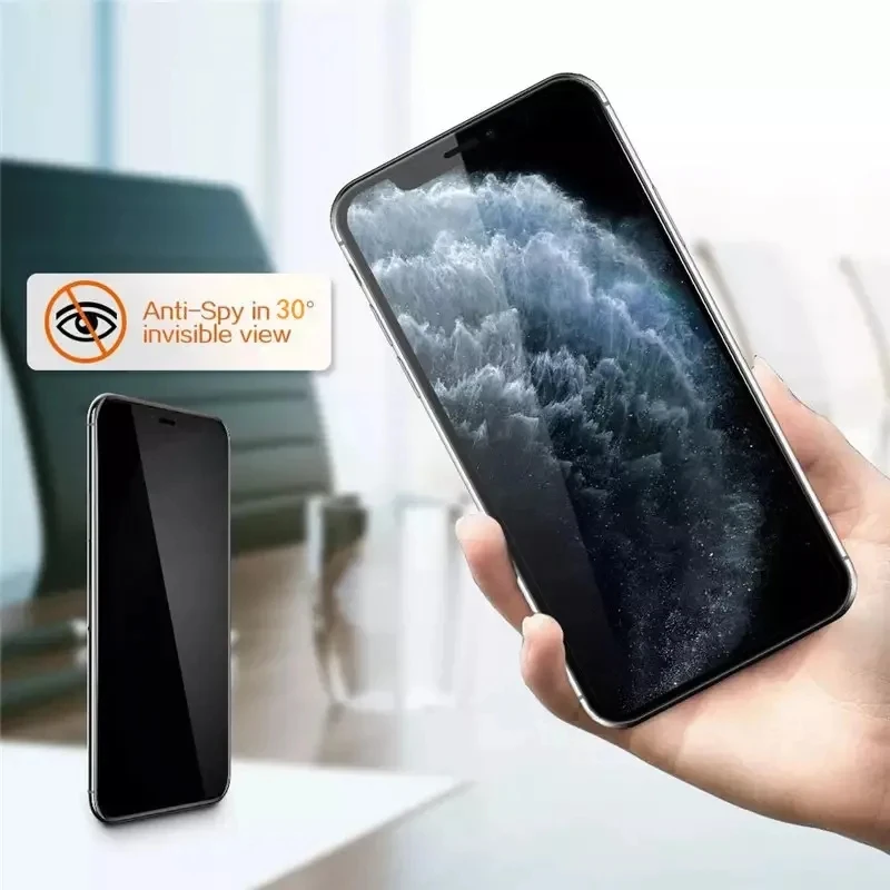 [3 Vidrio antiespía + 3 tapas de lentes] Protector de pantalla de privacidad de rayos morados para iPhone 16 15 14 Plus 13 12 Mini 11 Pro Max película templada
