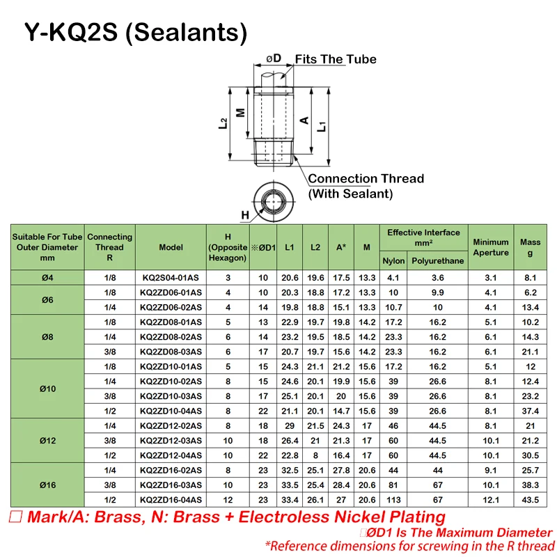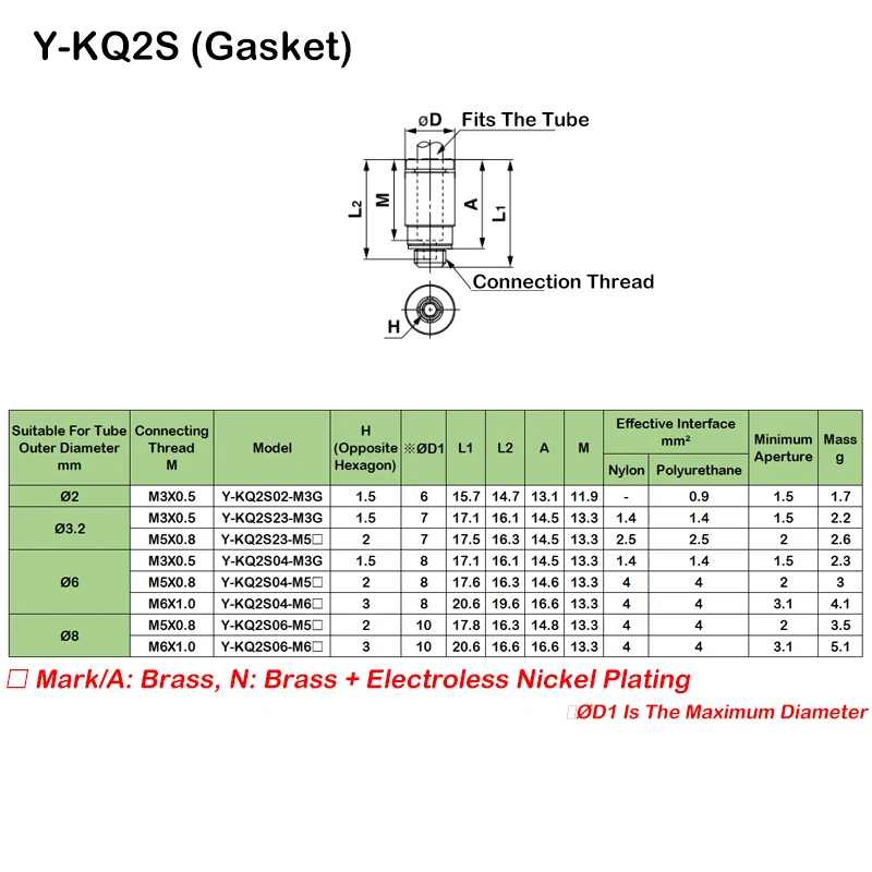 30 Uds conector neumático KQ2S tráquea conector rápido cilíndrico Hexagonal interno KQ2S04/06/08/10/12-M3A/M5A/M6A/01/02/03/04AS