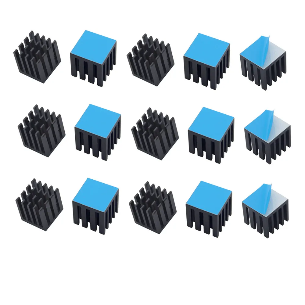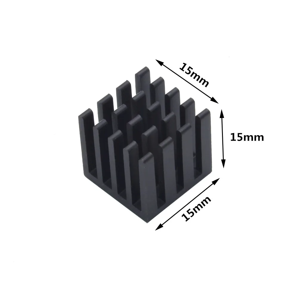 Comprar 30 Uds disipador de calor de aluminio 15x15x15mm Mini disipador de calor negro para Chip electrónico IC MOS Raspberry pi con cinta conductora térmica