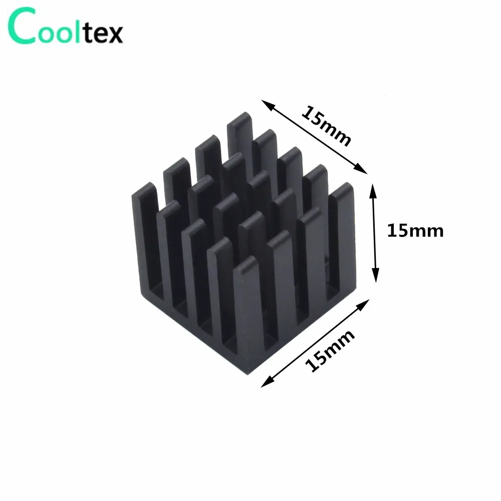 Comprar 30 Uds disipador de calor de aluminio 15x15x15mm Mini disipador de calor negro para Chip electrónico IC MOS Raspberry pi con cinta conductora térmica