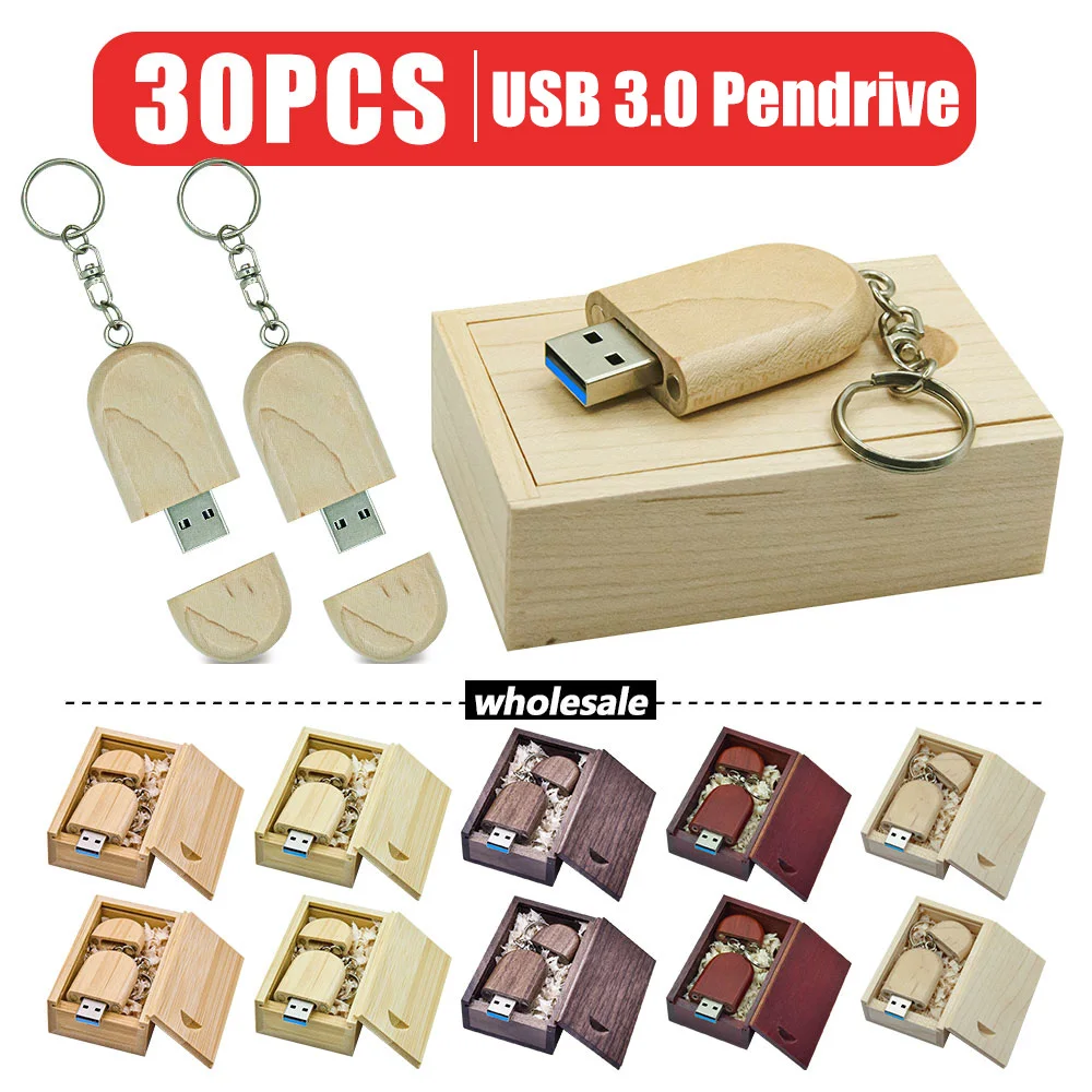 Comprar 30 Uds. De memoria USB de madera de arce 3,0 con llavero, unidad Flash Usb de 8GB, 16G, 32GB, 64GB, 128GB, memoria Usb para regalo de boda