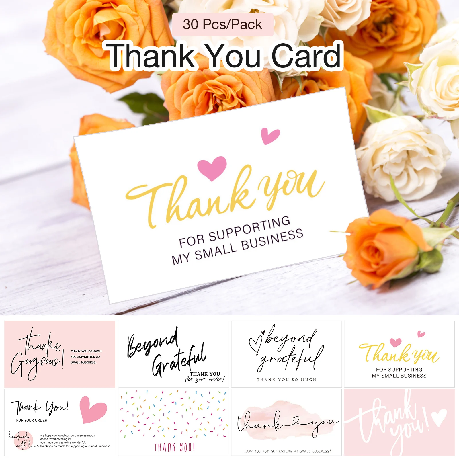 Comprar 30 Uds. De tarjetas de agradecimiento de acuarela rosa para apoyar mis tarjetas de visita pequeñas, tarjetas de agradecimiento de 5,4x9CM para decoración de paquetes de productos hechos a mano