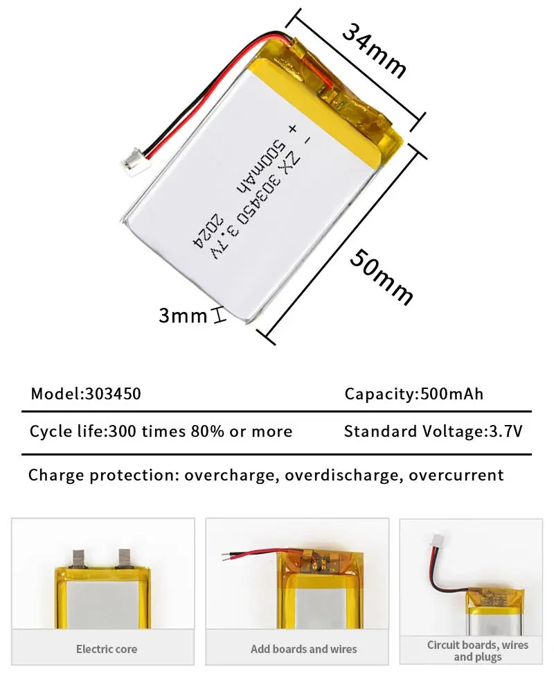 Note: The positive and negative lugs of the battery, front assembly/reverse assembly at random delivery, positive/reverse assembly does not affect the use of the product effect