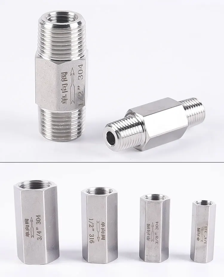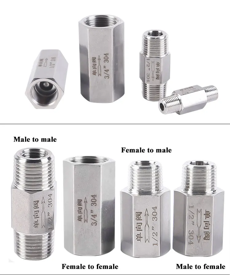 304 Stainless Steel Male/Female Thread PT Thread 1/8" 1/4" 3/8" 1/2" 3/4" Hexagonal Direct Non-Return Inline One-Way Check Valve