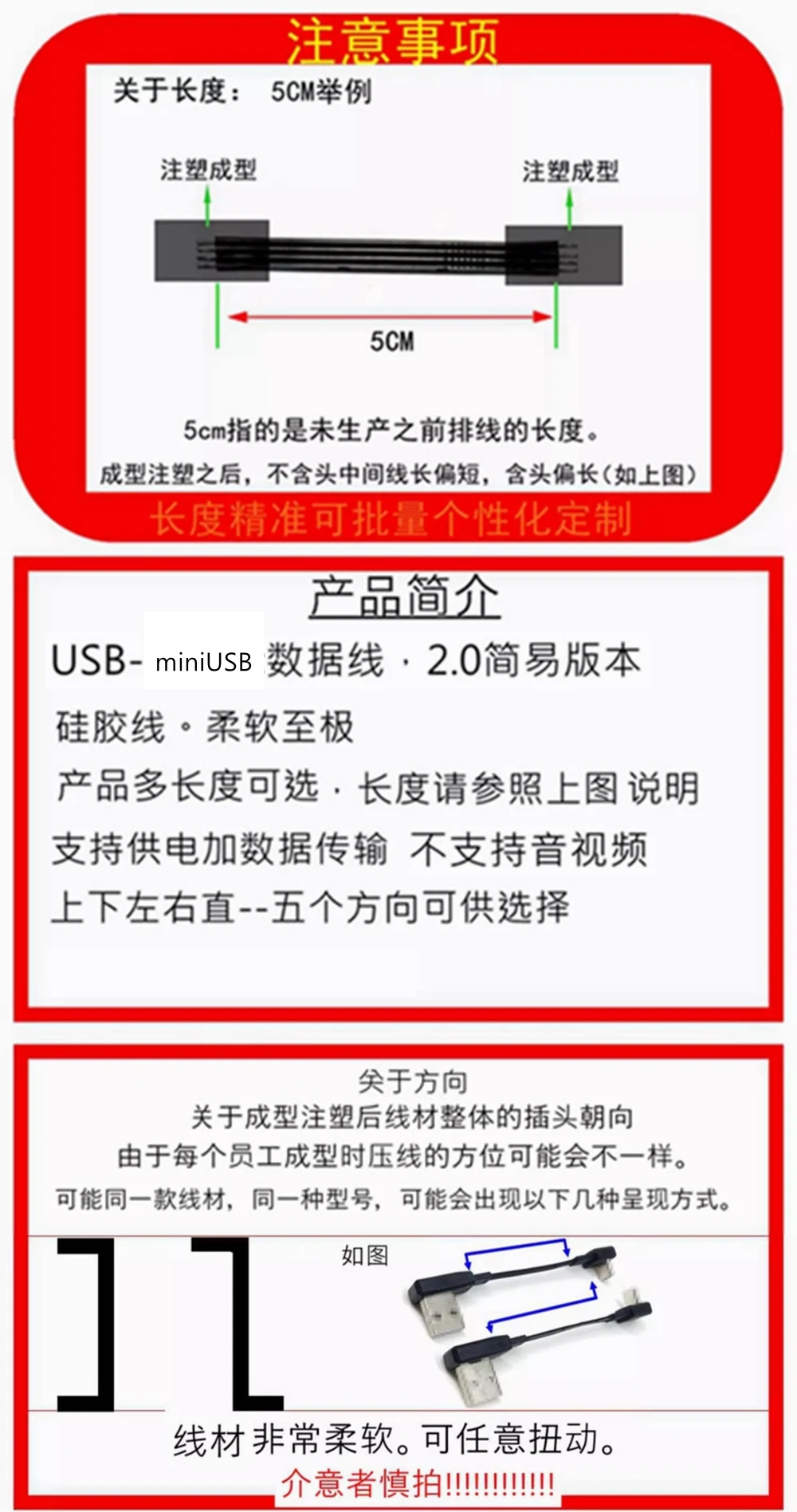 30CM 100CM Mini USB tipo B enchufe de 5 pines hacia arriba hacia arriba hacia abajo en ángulo recto 90 ° a USB 2.0 Cable de datos de enchufe plano 0,2 m 0,5 m