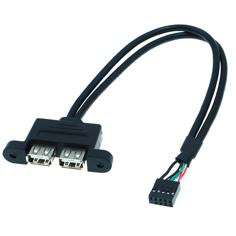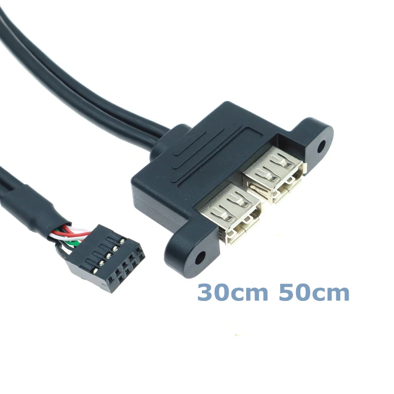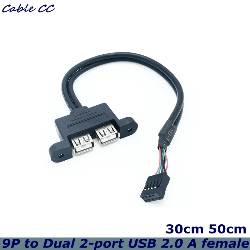 Comprar 30CM 50cm placa base interna 9Pin 9P a Dual 2 puertos USB 2,0 A hembra Cable de datos de montaje en Panel Cable de datos de computadora