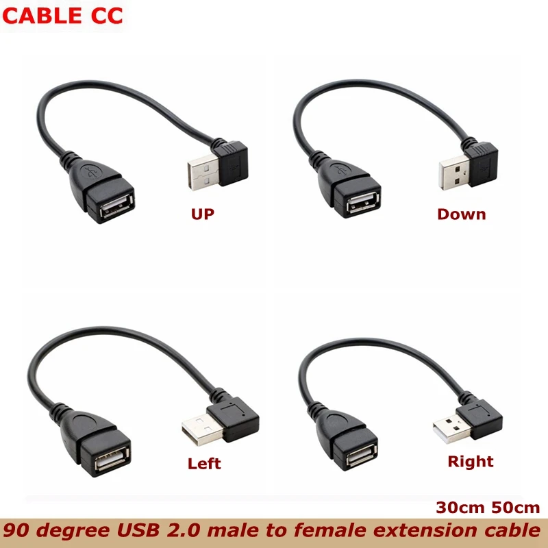 Comprar 30cm 50cm USB 2,0 A macho a hembra Cable adaptador de extensión de ángulo de 90 para ordenador portátil TV Digital Cable de extensión de datos de teléfono móvil