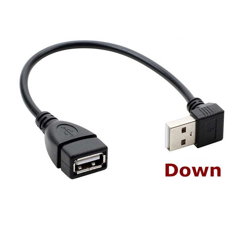 Cable de extensión USB 2.0 A en ángulo izquierdo, derecho, arriba y abajo de 90 grados, macho a hembra