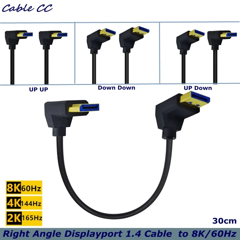 Comprar 30cm 90 ° Cable Displayport 1.4 en ángulo arriba y abajo Adaptadores de vídeo DP Ultra HD de 8K a 60 HZ para televisores, monitores LCD y proyectores