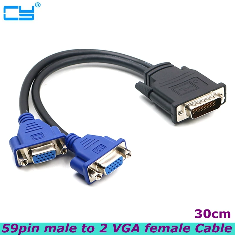 Comprar 30cm DMS-59 59 pines a 2 VGA macho a hembra Y divisor adaptador de Cable de vídeo para computadora Host tarjeta gráfica Cable de vídeo Dual