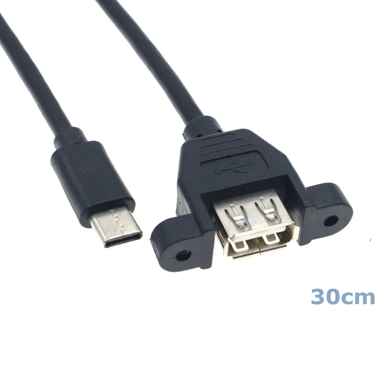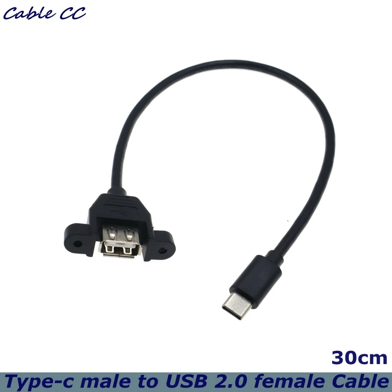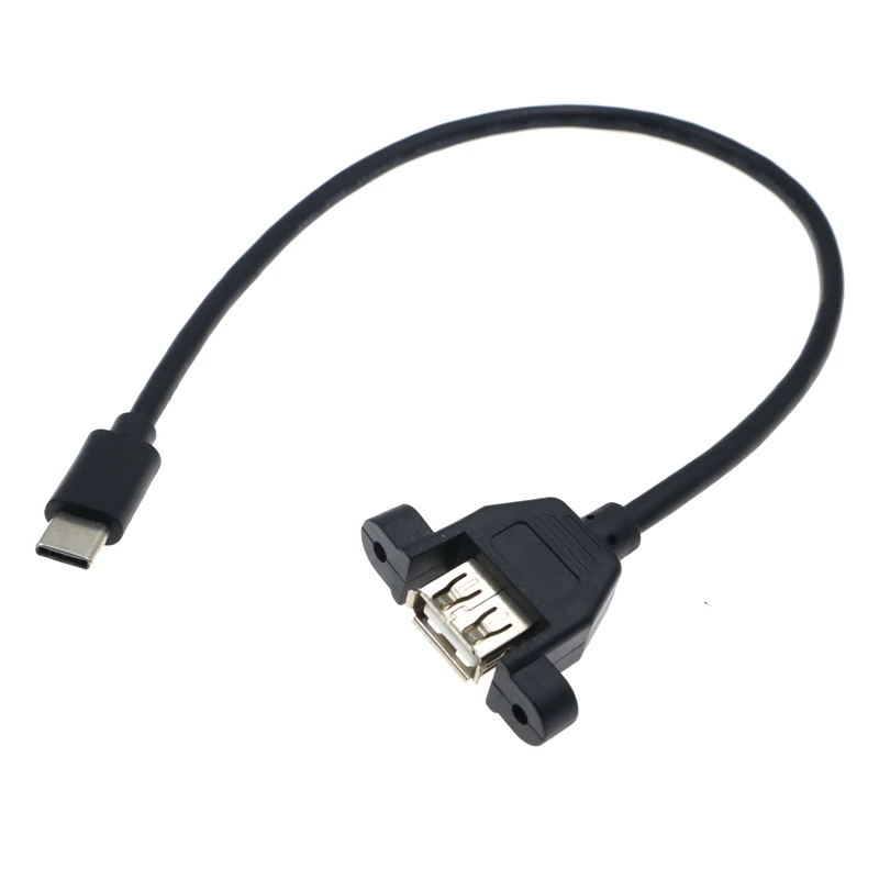 Comprar 30cm USB 3,1 tipo c macho a USB 2,0 hembra con orificios para tornillos, montaje en Panel, carcasa de ordenador, placa base, Cable de extensión OTG