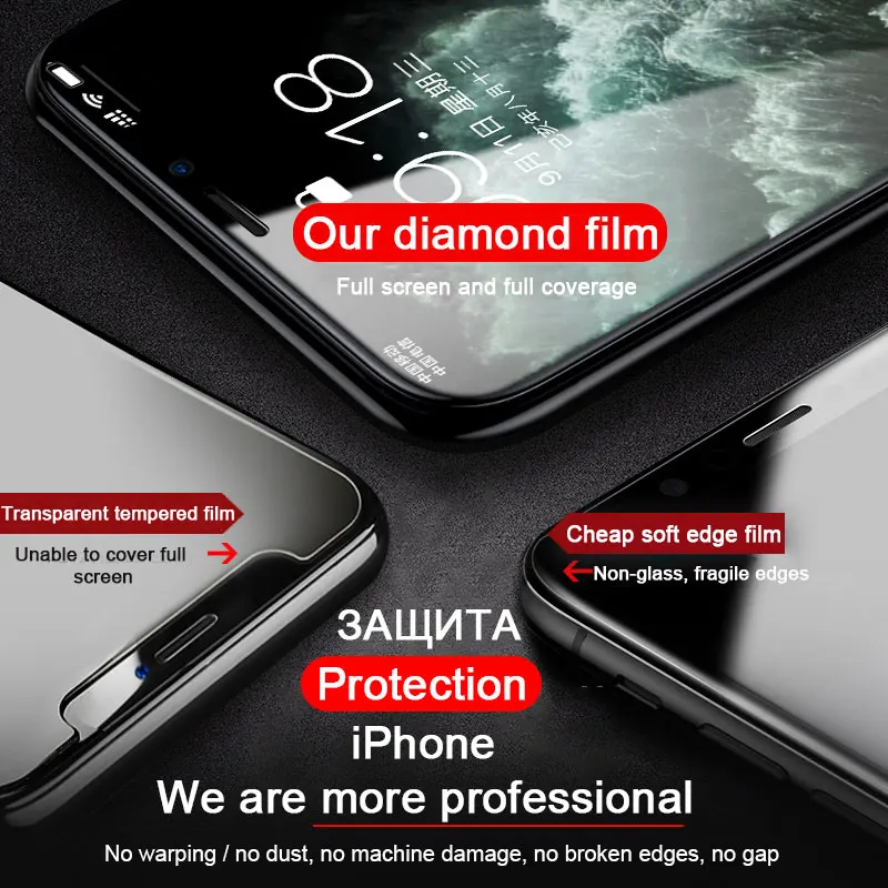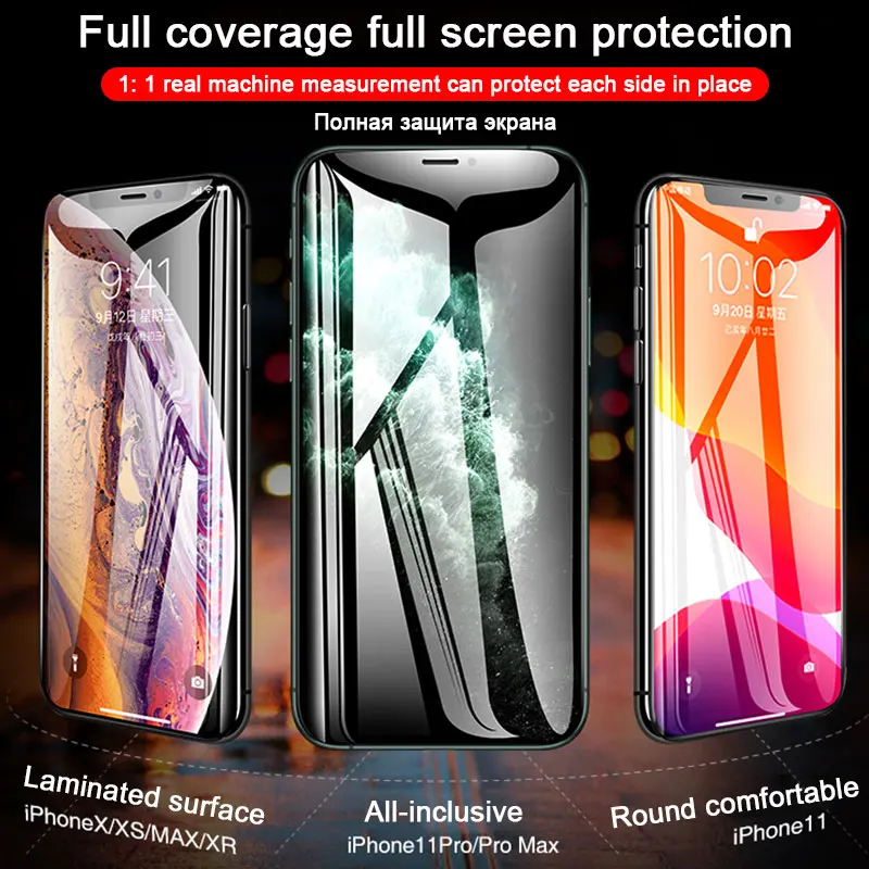 Comprar 30D-Protector de pantalla de vidrio templado para iPhone, película protectora de cristal con cubierta completa para móviles iPhone 11 Pro Max, X, XS Max, XR, 6, 6s, 7, 8 Plus, X
