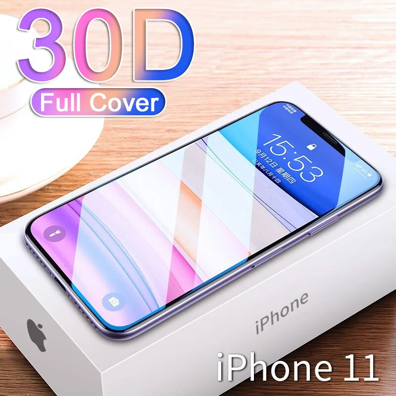 30D-Protector de pantalla de vidrio templado para iPhone, película protectora de cristal con cubierta completa para móviles iPhone 11 Pro Max, X, XS Max, XR, 6, 6s, 7, 8 Plus, X