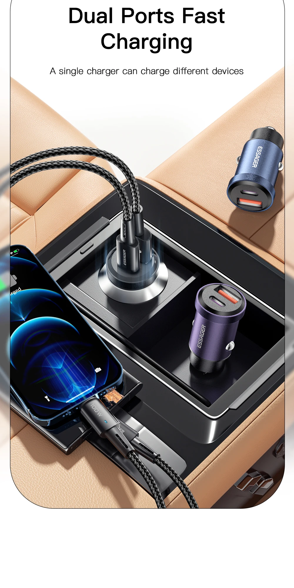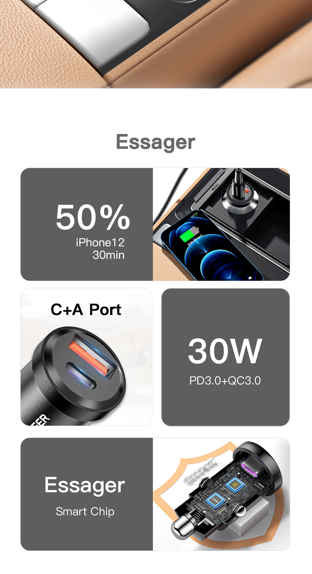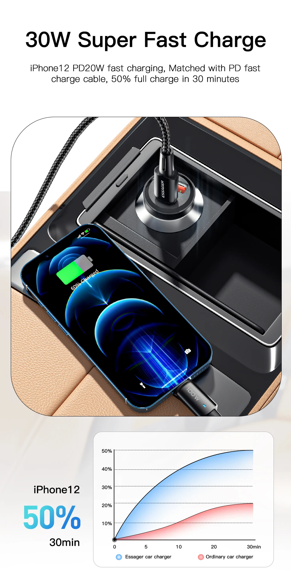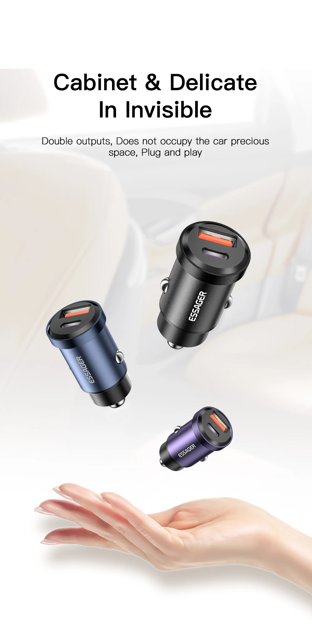 Comprar 30W ESSAGER Cargador USB para Coche, Dispositivo de Carga Rápida de 30 W, 5 A, USB Tipo C, 4.0 QC, PD, SCP para iPhone 12 y 13, Huawei, Xiaomi y Samsung