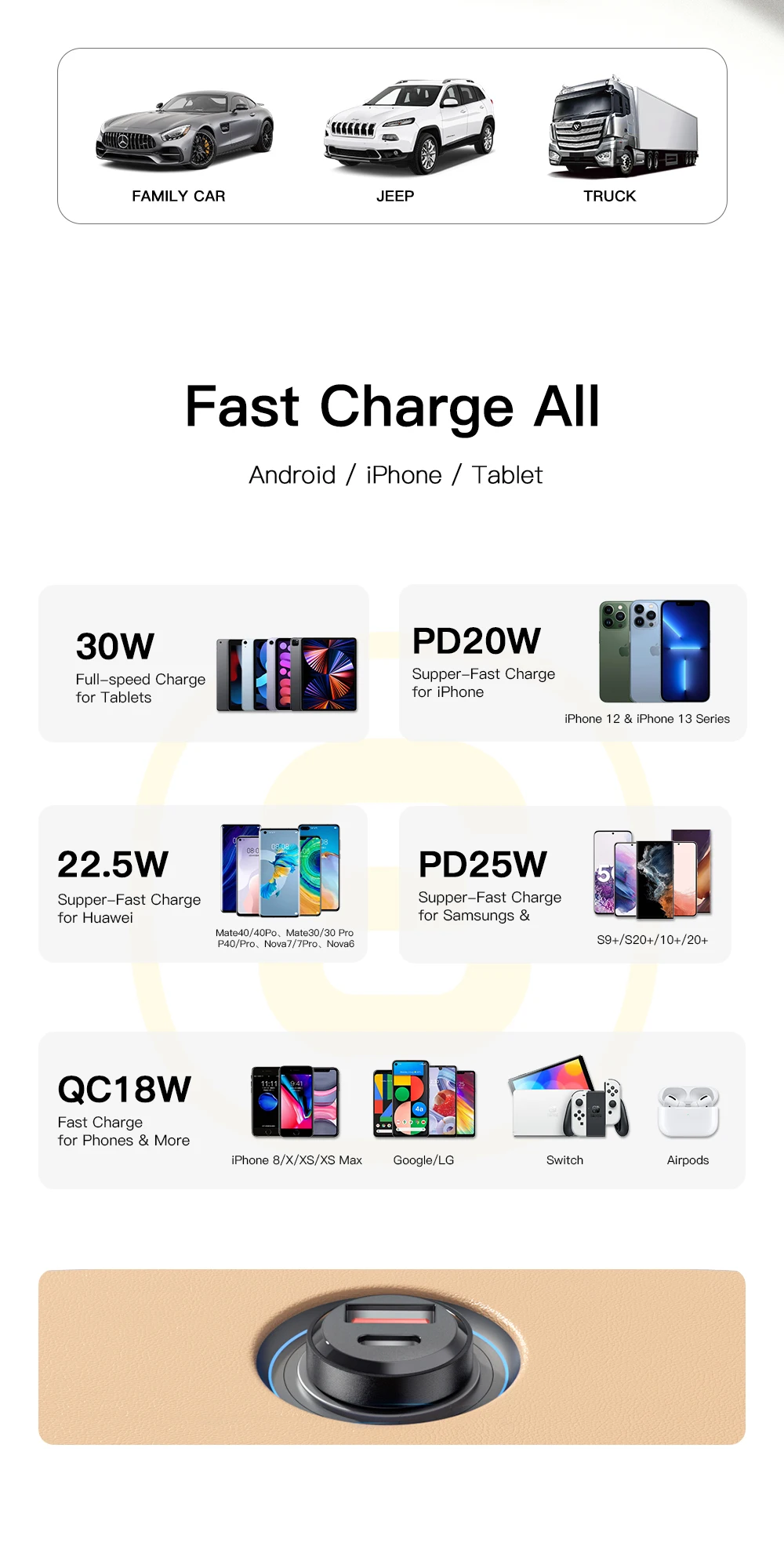 Si no tiene los teléfonos móviles Samsung, le sugerimos comprar un cargador de automóvil más barato de 30 W.