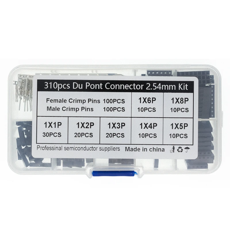 Comprar 310 unids/set 2,54mm macho + hembra Cable Dupont Cable de línea de puente 1/2/3/4/5/6/8 Pin conector carcasa Kit de bricolaje electrónico