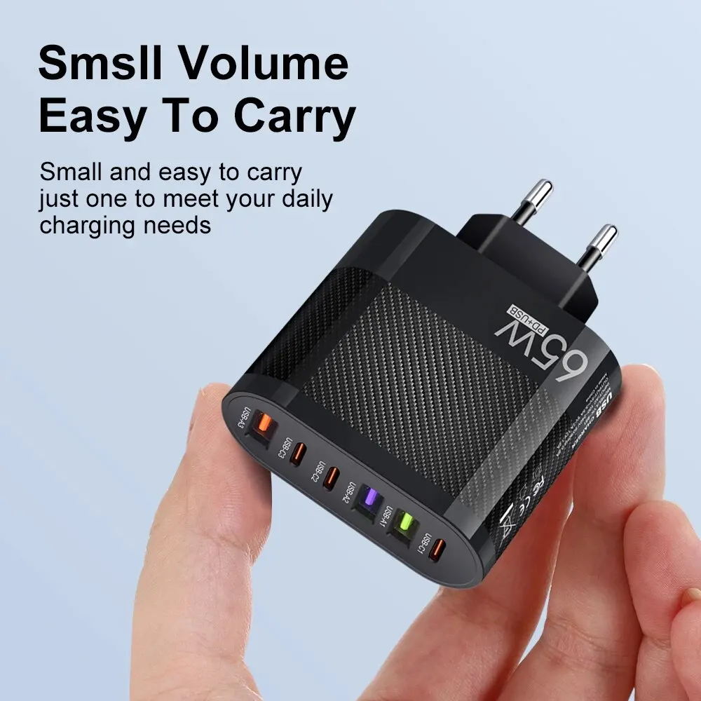 No es un cargador rápido... Ya mi cargador Xiaomi pesa unos gramos más y es un cargador único... este cargador. Conecté tres cosas: un iPad, un teléfono y un cargador de batería para cámara... Actualizaré la reseña si la casa se quema.