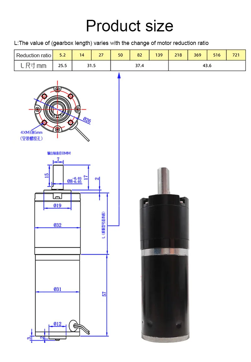 Comprar 32GP-31ZY motor de reducción CC 12V 24V micro motor de engranaje planetario de alto par de baja velocidad 11R 15R 112R 160R 296R 421R 1154R 2160R