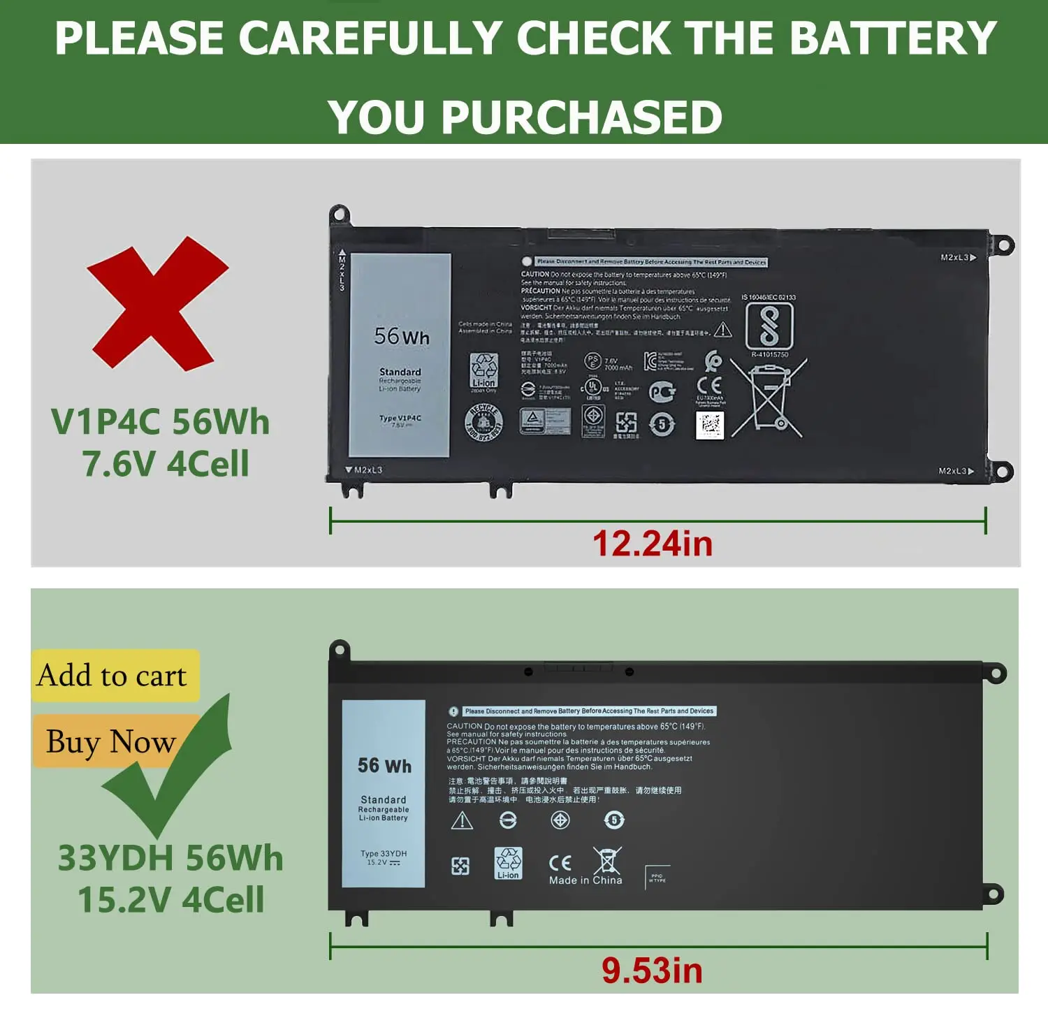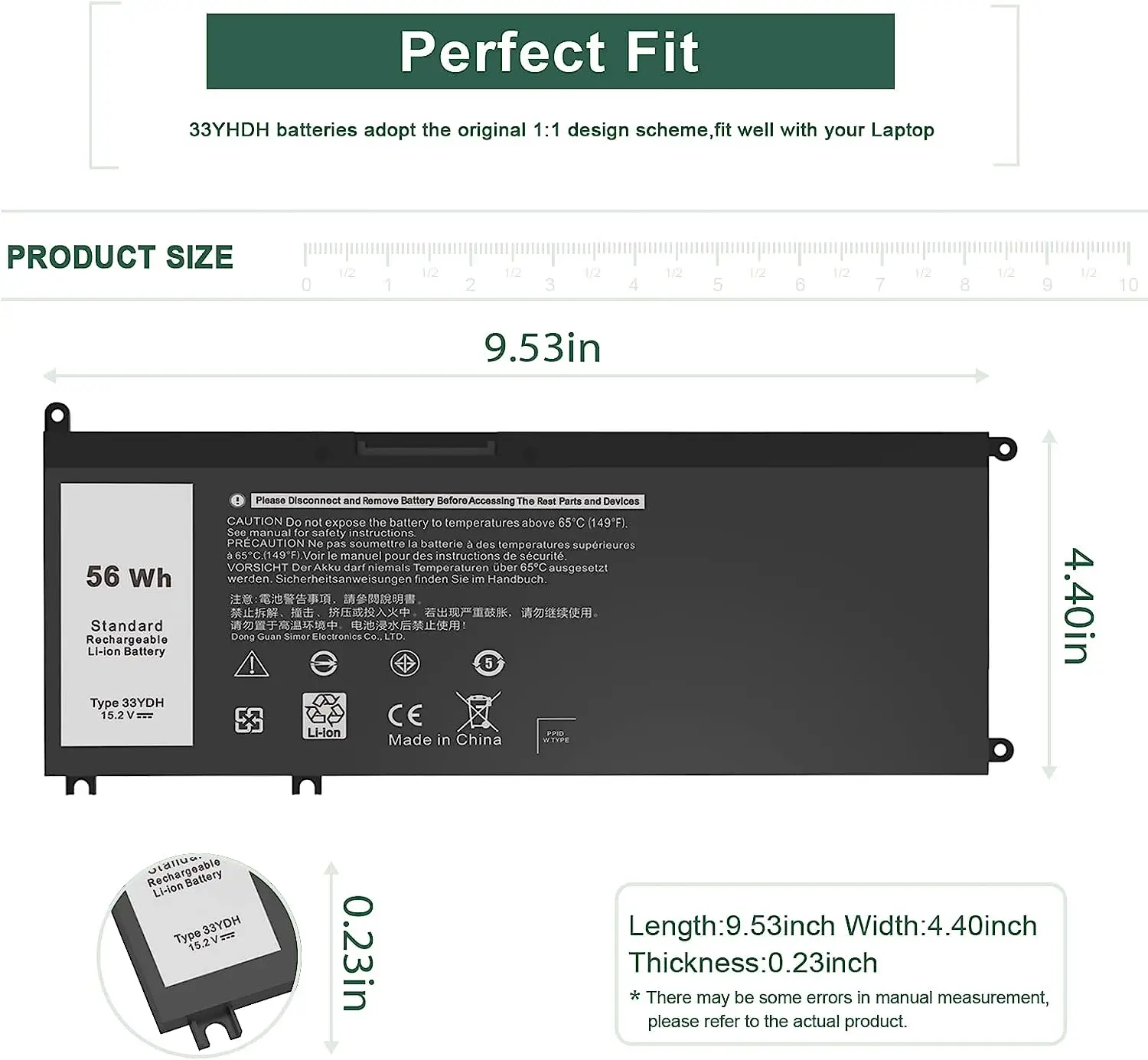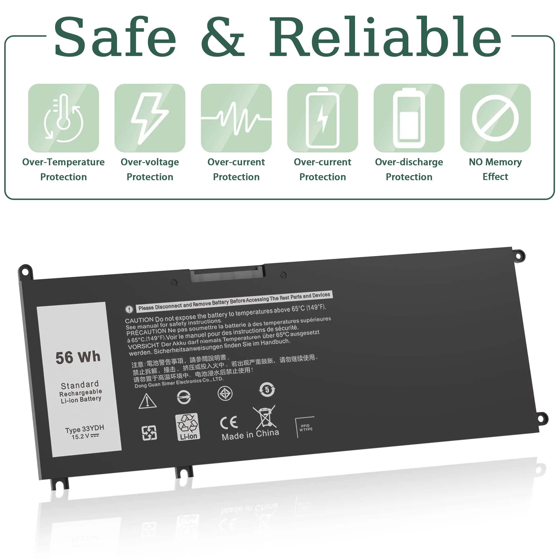 Comprar 33YDH-batería para portátil Dell Inspiron 17, 7778, 7786, 7773, 15, 7577, G3, 3579, G5, 5587, G7, 7588, Latitude 13, 3380, 14, 3490, 15, 3590, 3580