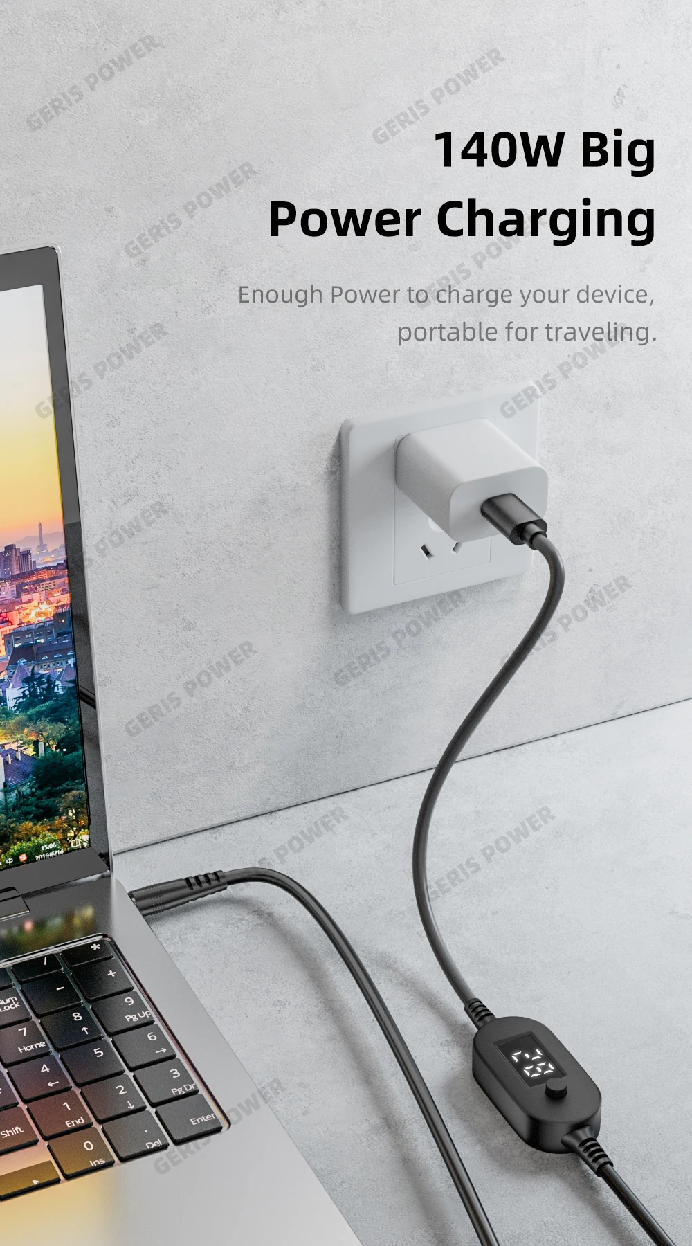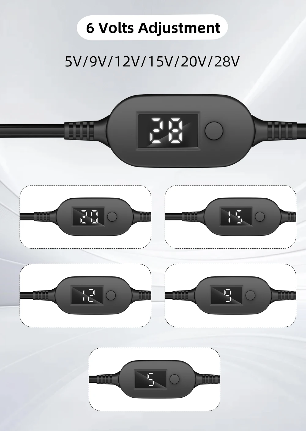 34 Uds. Adaptador de corriente CA CC Universal 5,5x2,1mm puntas Kits de conector 140W PD USB C a 5,5X2.5mm 5V-28V Cable de voltaje ajustable