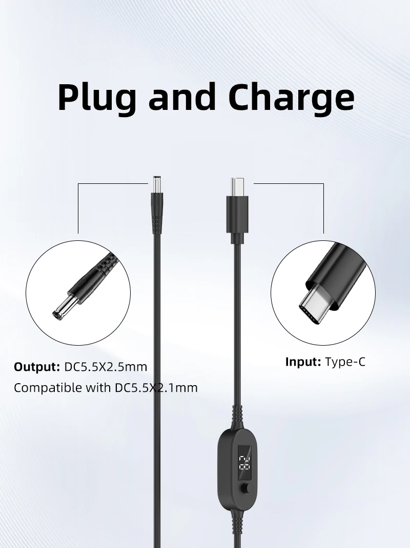 Es necesario proporcionarun cargador de carga rápida PD dedicadoPara su dispositivo, su cargador PD tipo C debe tener una salida de 5V 9V 12V 15V 20V.