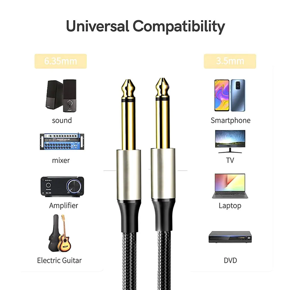 4. El cable auxiliar macho de 6,35mm a macho de 6,35mm es adecuado para todos los dispositivos con conectores auxiliares estándar de 0.250mm y puertos de entrada auxiliares.