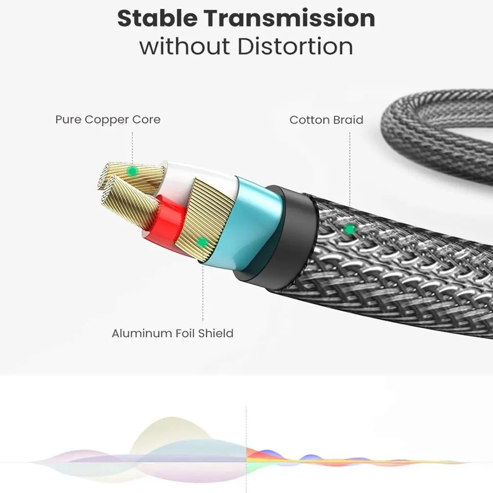 5. La vida útil de más de 10.000 veces y la carcasa de nailon trenzado de doble capa hacen que el cable de audio sea más duradero y menos enredado.